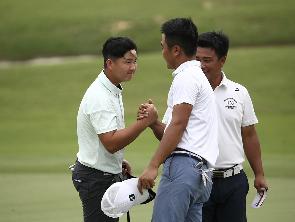 Trong khi đó, Nguyễn Anh Minh tiếp tục thể hiện một phong độ chói sáng với vòng đấu 69 gậy. Khởi đầu với điểm birdie ở hố số 5, nhưng 2 bogey liên tiếp ở hố 7 và 8 khiến cho nhà vô địch Lexus Challenge 2022 kết thúc nửa đầu với thành tích +1 gậy. Tuy nhiên, với việc lấy lại cảm giác trong những cú đánh bằng gậy sắt, golfer sinh năm 2007 đã hoàn toàn lột xác trong 9 hố cuối.