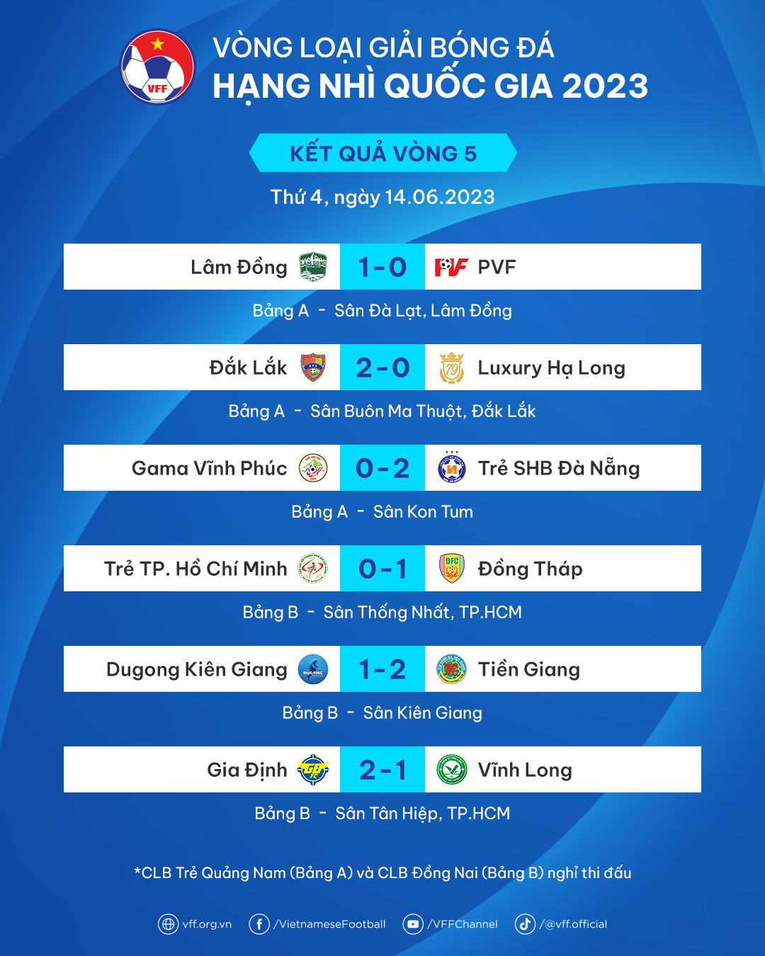 Điều này cũng diễn ra ở bảng B khi cuộc đua mở rộng ra tới 5 đội. Đồng Tháp lần đầu tiên kể từ đầu giải được tận hưởng hương vị của ngôi đầu bảng khi vượt qua Trẻ TP.HCM với tỷ số 1-0 nhờ pha lập công duy nhất của Nguyễn Công Thành.