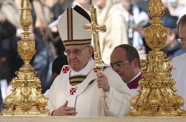 Tân Giáo hoàng Francis và cây gậy mục tử của ông trong lễ phụng vụ ngày hôm qua 19/3. |