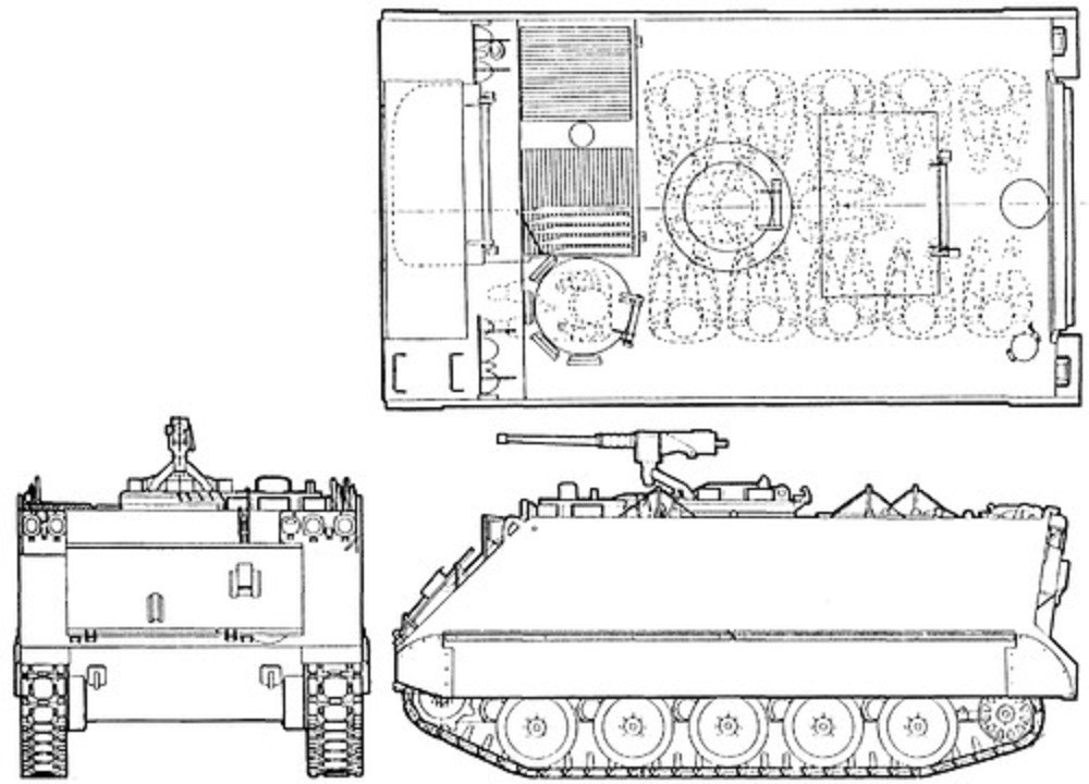 Theo Army Recognition, M113 là xe bọc thép bánh xích thuỷ bộ lưỡng dụng được Mỹ chế tạo và sản xuất vào cuối những năm 1950, nhằm mục đích chở binh sĩ trên chiến trường. Xe có khối lượng 14 tấn; dài 5,3m; rộng 3m; cao 1,85m. Kíp điều khiển có 2 người gồm trưởng xe và lái xe. Khoang sau đủ rộng để chở 11 binh sĩ được trang bị đầy đủ vũ khí. Khi cần triển khai bộ binh trên chiến trường, kíp lái sẽ cho mở cửa ở phía sau.