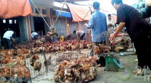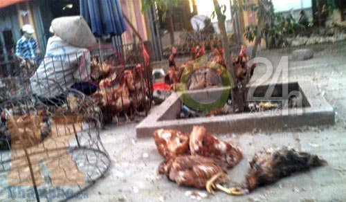 Rất nhanh chóng, chủ cửa hàng vứt gà chết sang một bên, gà sống được thả vào chuồng. Đám gà thoi thóp thở được vứt lẫn vào đống gà chết. “Mấy hôm nay thời tiết nóng bức, lại vướng vụ cúm gia cầm bên Trung Quốc. Làm ăn khó khăn, giờ thêm một đống gà chết thế này còn lãi lờ gì nữa”, Q., chủ xe cám cảnh nói.