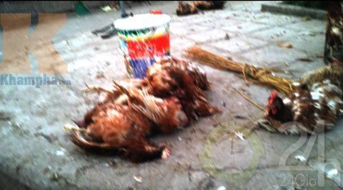 lên nồng nặc. Đập vào mắt chúng tôi là hình ảnh gà nằm chết còng queo. Có con