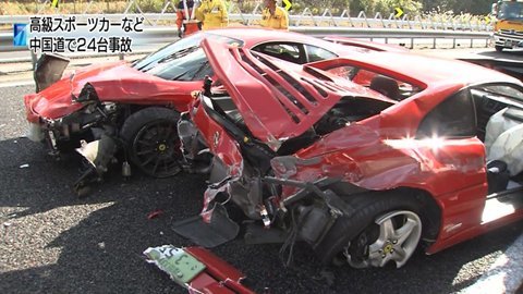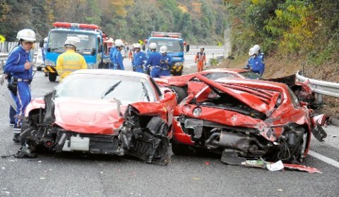 Chiếc Ferrari dẫn đầu đoàn là F430 Scuderia do một doanh nhân 60 tuổi đến từ Fukuoka cầm lái. Ông điều khiển xe vượt qua một chiếc xe chạy chậm hơn, được dự đoán là Toyota Prius, rồi mất lái. Đây cũng là lúc vụ tai nạn liên hoàn bắt đầu.