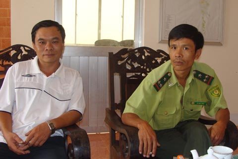 | Kiểm lâm Lưu Đức Tuấn (phải) khẳng định rắn hổ mây chính là rắn hổ chúa theo cách gọi ngoài Bắc |