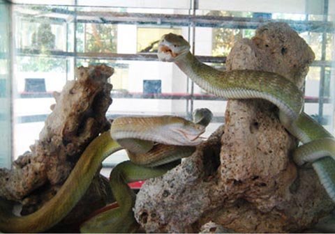 | Tiêu bản rắn hổ mây ở Trại rắn Đồng Tâm. Ảnh internet |