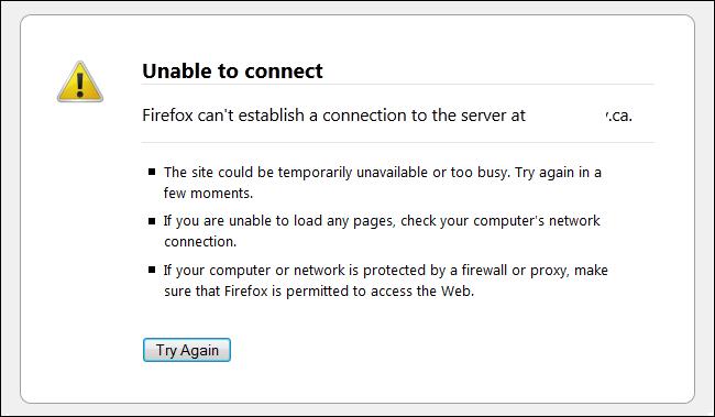 Trang thông báo lỗi này ở trên Chrome cũng giống như lỗi không tìm thấy máy chủ còn với Firefox là dòng chữ "Không thể kết nối" (Unable to Connect).