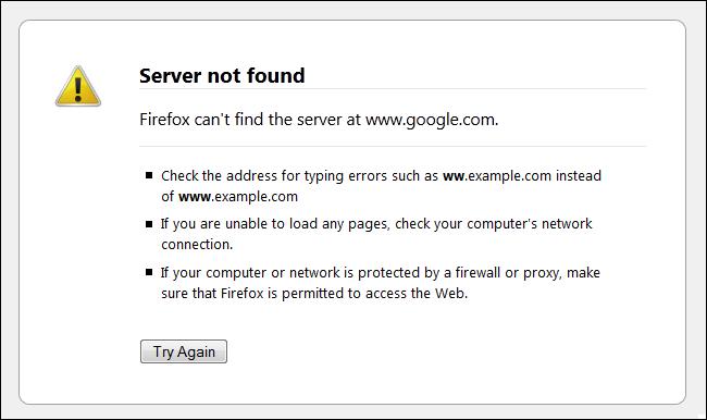 Trang thông báo lỗi không tìm thấy máy chủ (Server Not Found)