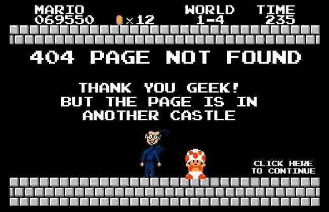 Họ có thể tùy chỉnh một số trang thông báo lỗi như trang 404 hoặc một số trang thông báo lỗi cơ bản khác để trông nó trở nên sinh động và thú vị hơn. Ví dụ như trang HowtoGeek đã lấy cảm hứng từ trò chơi nổi tiếng Mario để thiết kế lại trang báo lỗi 404 của mình. Trông thật thú vị và đây cũng là cách để chủ trang web điều hướng người dùng tốt hơn những trang thông báo thông thường.