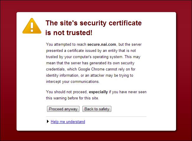 Khi bạn thấy trang báo lỗi chứng thực thì có nghĩa là bạn đang gặp nguy cơ có thể truy nhập vào một trang web không hợp pháp. Ví dụ, nếu bạn cố gắng truy cập vào trang web ngân hàng của bạn thông qua mạng WiFi công cộng và thấy trang báo lỗi này, điều này thể hiện có thể ai đó đang cố gắng mạo danh trang web ngân hàng để đánh cắp thông tin.