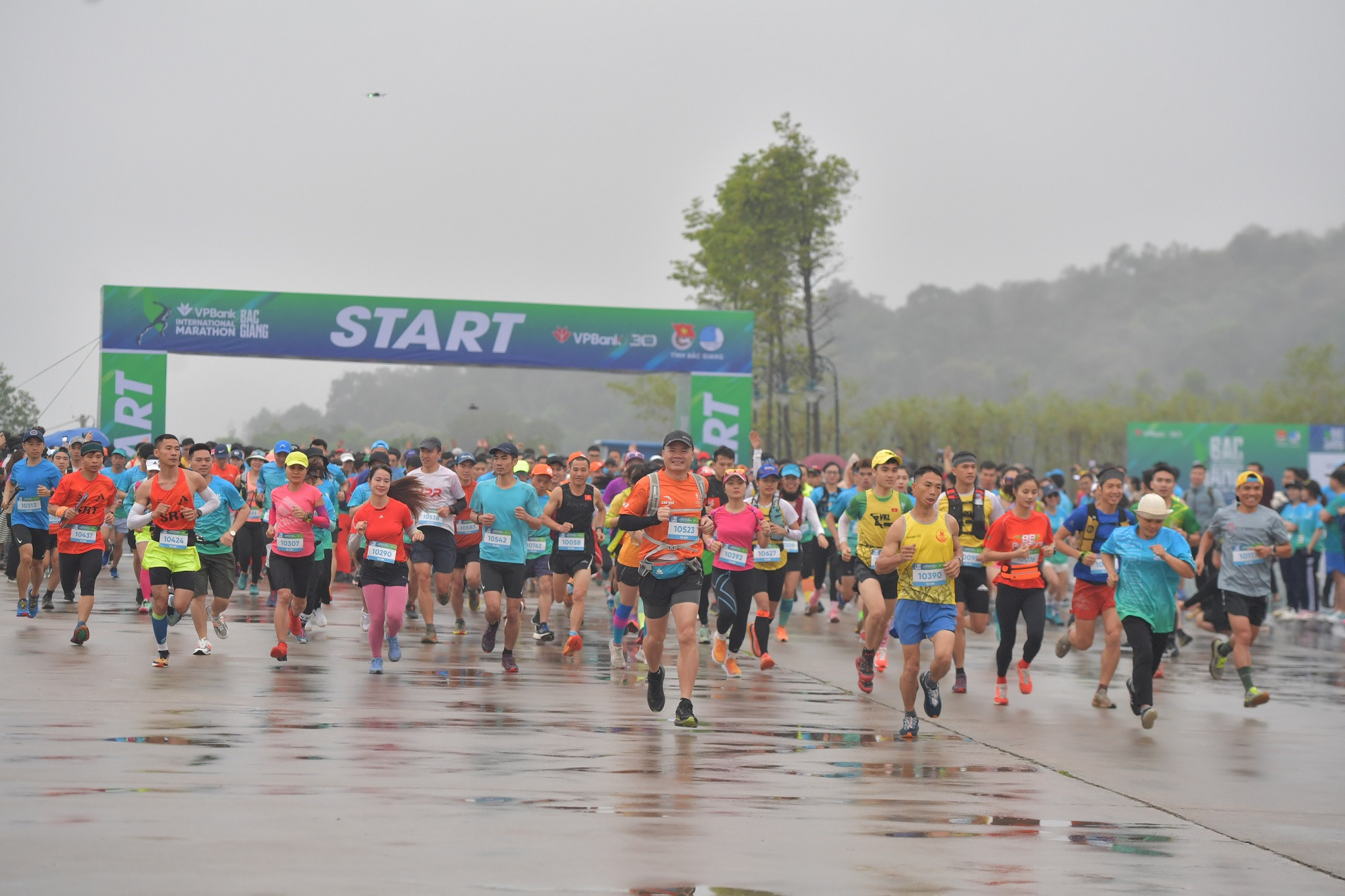 Giải chạy VPBank Bắc Giang International Marathon năm nay có 2 nội dung: 5km và 10km gồm trail. Thi đấu trong thời tiết xấu, mưa phùn, mây mù dày đặc, vượt qua nhiều con dốc dựng đứng, mỏm đá cheo leo, đường trơn trượt song các VĐV đã vượt qua chính mình để hoàn thành cự ly thi đấu. Ban tổ chức đã bố trí nhiều điểm hỗ trợ y tế. Những đoạn đường khó đi, hiểm trở đều được gia cố bằng thang gỗ, có thông tin cảnh báo nhằm bảo đảm an toàn cho VĐV.
