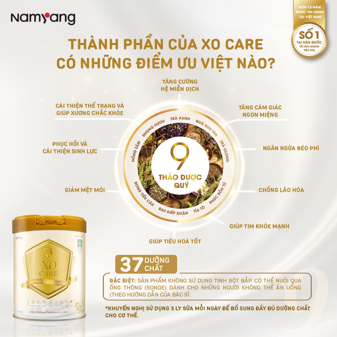 Là một tập đoàn dày dặn kinh nghiệm với hơn 60 năm nghiên cứu và phát triển, tập đoàn Namyang Hàn Quốc đã góp phần quan trọng đưa ngành công nghiệp chế biến dinh dưỡng của Hàn Quốc vươn cao. Trong đó, lmperial Majesty XO Care là sản phẩm dinh dưỡng tiêu biểu mang đến nhiều lợi ích sức khoẻ cho đối tượng người thành niên, người cao tuổi và người bệnh cần phục hồi sức khoẻ.
