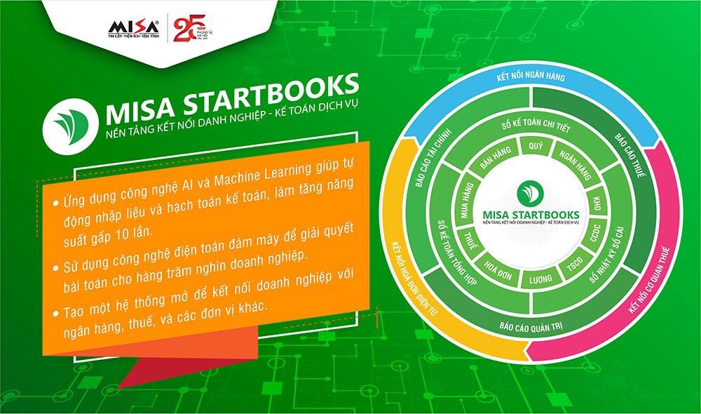 Luôn tiên phong ứng dụng công nghệ của cuộc cách mạng công nghiệp 4.0, MISA đã ứng dụng những công nghệ hiện đại như AI, Machine Learning, Cloud Computing vào sản phẩm MISA StartBooks giúp tạo ra những hiệu quả đột phá về năng suất cũng như giúp các doanh nghiệp có thể kết nối trực tiếp với ngân hàng, cơ quan thuế và các đơn vị khác một cách nhanh chóng, tiện lợi.
