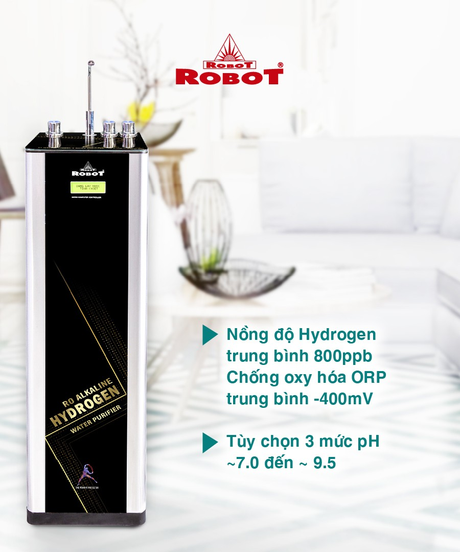Mới đây, công ty Robot tiếp tục phối hợp các chuyên gia Hàn Quốc nghiên cứu công nghệ lọc tiên tiến và tích hợp vi điều khiển điện tử để cho ra Máy lọc nước R.O Hydrogen kiềm chuyên dụng cho nguồn nước chưa đạt chuẩn, bao gồm cả nước giếng, nhiễm cứng, đá vôi, nước máy…