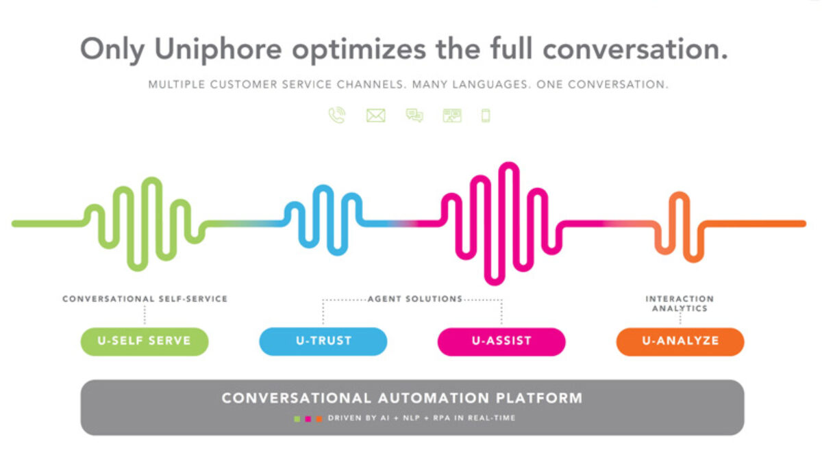 Uniphore tập trung vào xây dựng giải pháp tự động hoá các cuộc hội thoại qua hệ thống tổng đài với A.I nhằm tối ưu hoá hiệu quả các cuộc hội thoại giúp nâng cao trải nghiệm khách hàng, tối ưu hoá dịch vụ và nâng cao giá trị doanh nghiệp.