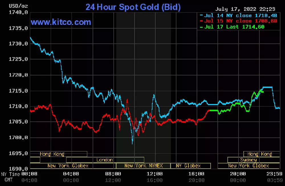Trong khi đó, giá vàng thế giới hôm nay (18/7) quay đầu tăng nhẹ. Lúc 15h27' hôm nay (ngày 18/7, giờ Việt Nam), giá vàng thế giới giao ngay đứng quanh ngưỡng 1.718,9 USD/ounce. Còn giá vàng giao tương lai tháng 8 trên sàn Comex New York ở mức 1.717,5 USD/ounce.