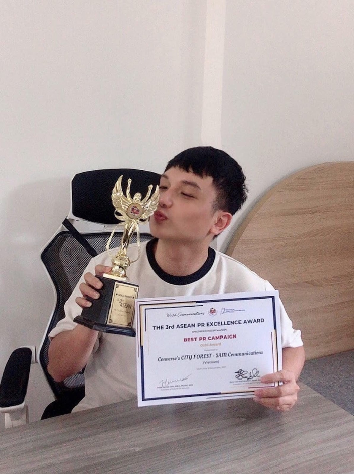 Hiện Duy Đức đang giữ vị trí Giám đốc quan hệ khách hàng (Account Director) tại SAM Communcations. Anh chia sẻ, các đồng nghiệp, đặc biệt là anh Vinh Trần - Founder của SAM Communications và đội Unicorn là một phần quan trọng của giải thưởng vì đã đồng hành cùng anh trên hành trình phát triển kiến thức, trau dồi kỹ năng chuyên môn, rèn luyện kỹ năng mềm qua từng chiến dịch.