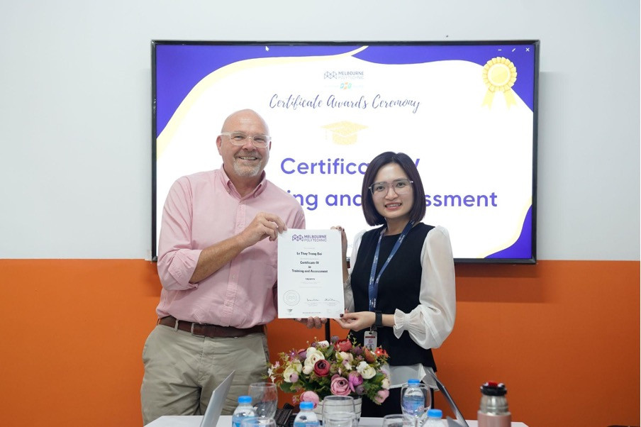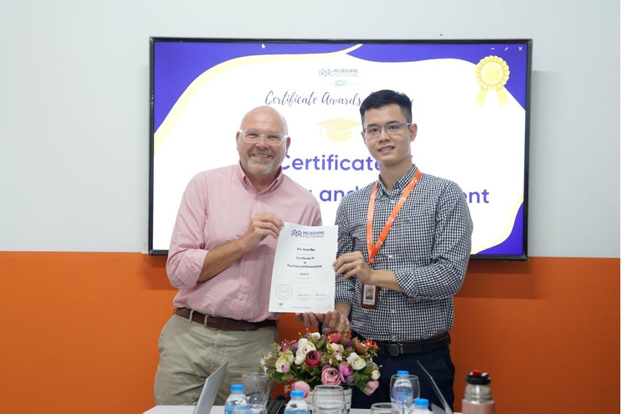 Bên cạnh đó, đội ngũ giảng viên của Melbourne Polytechnic đều có chuyên môn cao, 100% đạt chứng chỉ giảng dạy quốc tế do Melbourne Polytechnic Australia cấp. Trước đó, toàn bộ giảng viên đã tham gia tập huấn trong Chương trình đào tạo cấp chứng chỉ bậc 4 và đánh giá trong giáo dục nghề nghiệp.