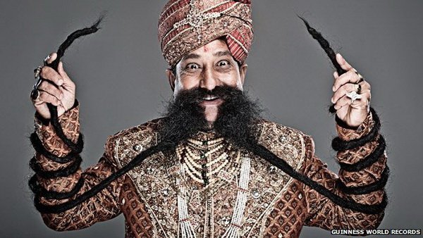 Guinness với bộ ria mép dài nhất thế giới: 14 feet (khoảng hơn 4,2m). Ông Ram nuôi