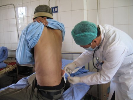 | Bác sĩ đang điều trị cho bệnh nhân tại Bệnh viện 09. Ảnh: Q.D |