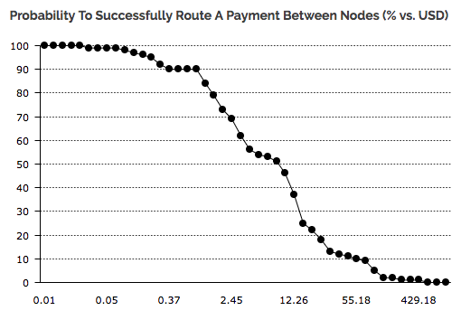 Theo thử nghiệm mới đây, Lightning Network chỉ có thể đảm bảo tỷ lệ thành công 100% khi thực hiện các giao dịch dưới 0,3 USD. Tỷ lệ thành công càng giảm khi số tiền giao dịch càng lớn. Với 50 USD, tỷ lệ thành công chỉ còn 50%. Và với 490 USD, tỷ lệ thành công khi giao dịch chỉ còn 1%.