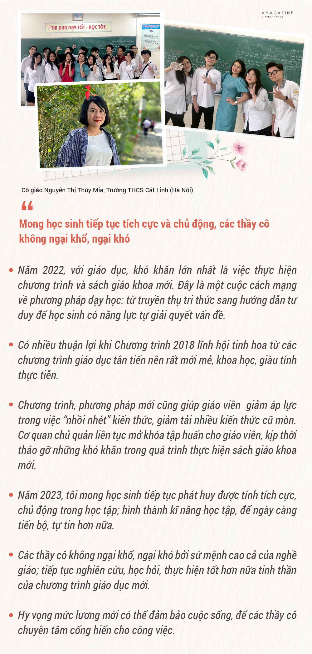 Tăng cường cơ sở vật chất, bổ sung hơn 65.000 giáo viên trong giai đoạn 2022-2026, riêng năm học 2022-2023 này là 27.000 giáo viên từ mầm non đến phổ thông công lập; nâng lương cơ sở và điều chỉnh phụ cấp ưu đãi cho giáo viên… Mong rằng những chính sách kịp thời đó sẽ nhanh chóng được thực hiện để thầy cô có thêm động lực vượt qua khó khăn, vững tin bám trường bám lớp, để hình ảnh người thầy luôn là những gì đáng trân quý nhất trên hành trình thực hiện sứ mệnh gieo chữ.