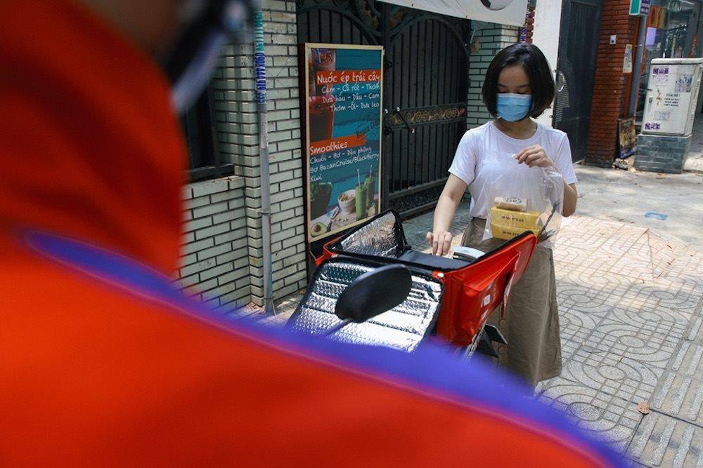 Khi được PV Vietnamnet hỏi, một tài xế đang làm cho một ứng dụng gọi thức ăn lớn cho biết chỉ một số khách hàng yêu cầu giao hàng không tiếp xúc.