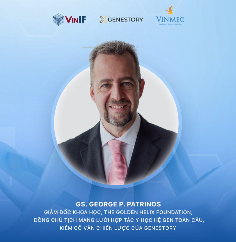| Hội thảo Ứng dụng Dược lý học di truyền trong lâm sàng được tổ chức bởi Quỹ Đổi mới sáng tạo Vingroup (VINIF), Công ty Cổ phần GeneStory và Bệnh viện Đa khoa Quốc tế Vinmec vào ngày 26/07/2022, được phát trực tiếp trên trang Facebook chính thức của GeneStory. Để cập nhật thêm thông tin về hội thảo và các hoạt động của GS. George Patrinos trong thời gian công tác ở Việt Nam, theo dõi tại www.facebook.com/GeneStoryVN |