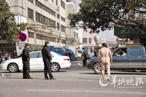 Quản (Trung Quốc) đã đứng trần truồng giữa phố khiến giao thông ác tắc