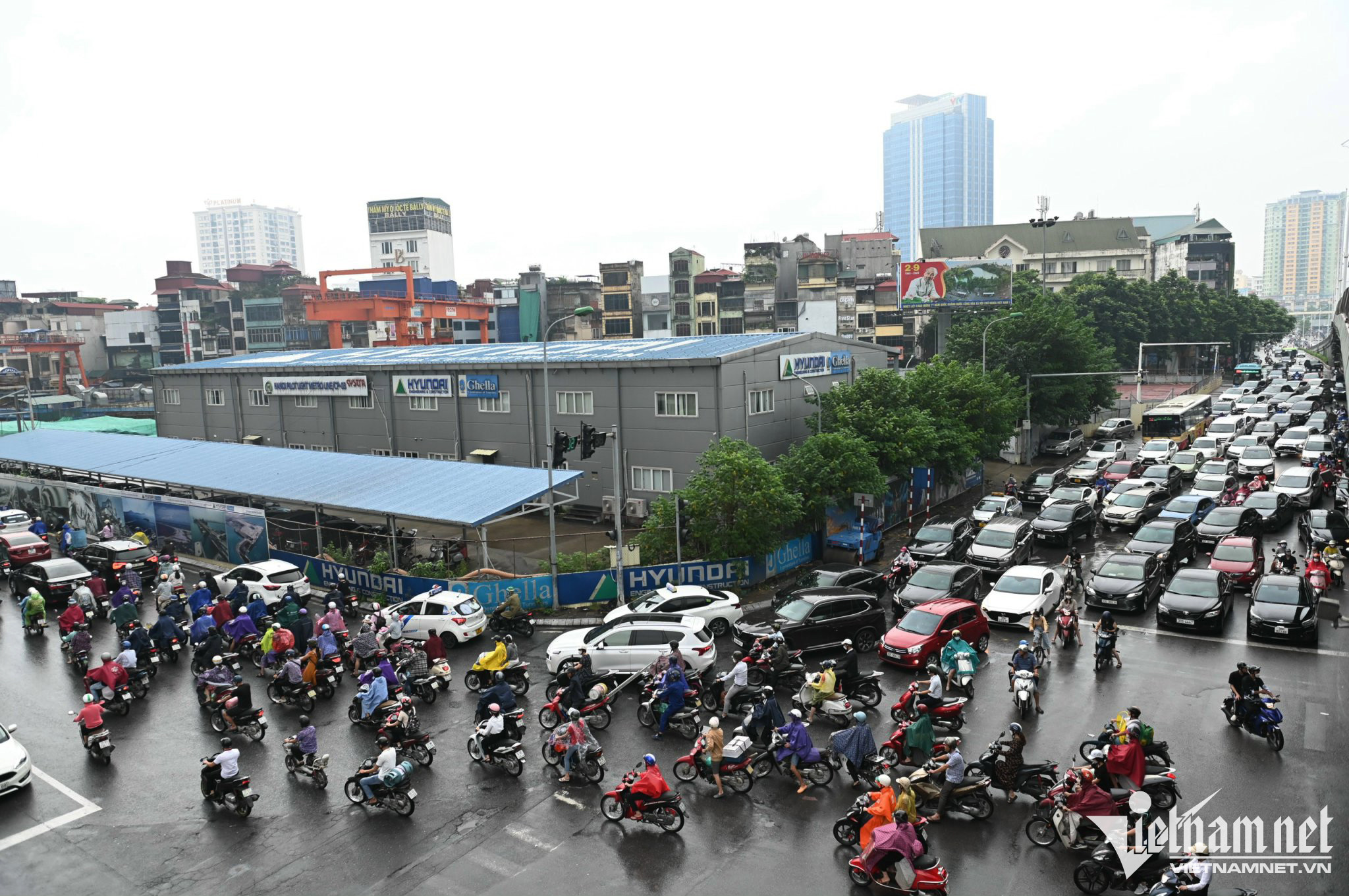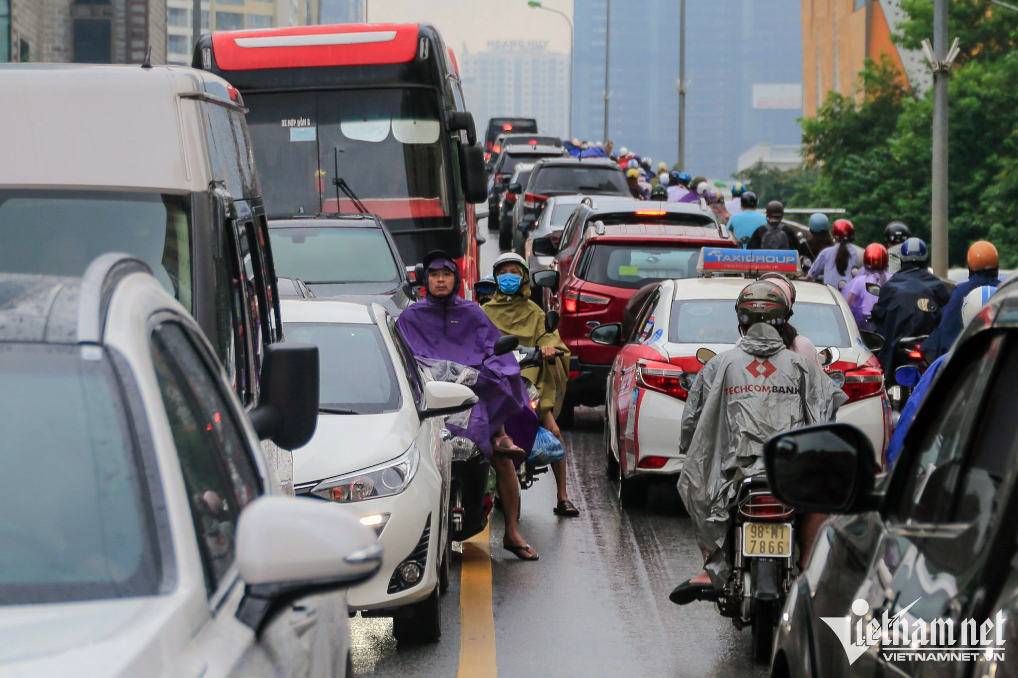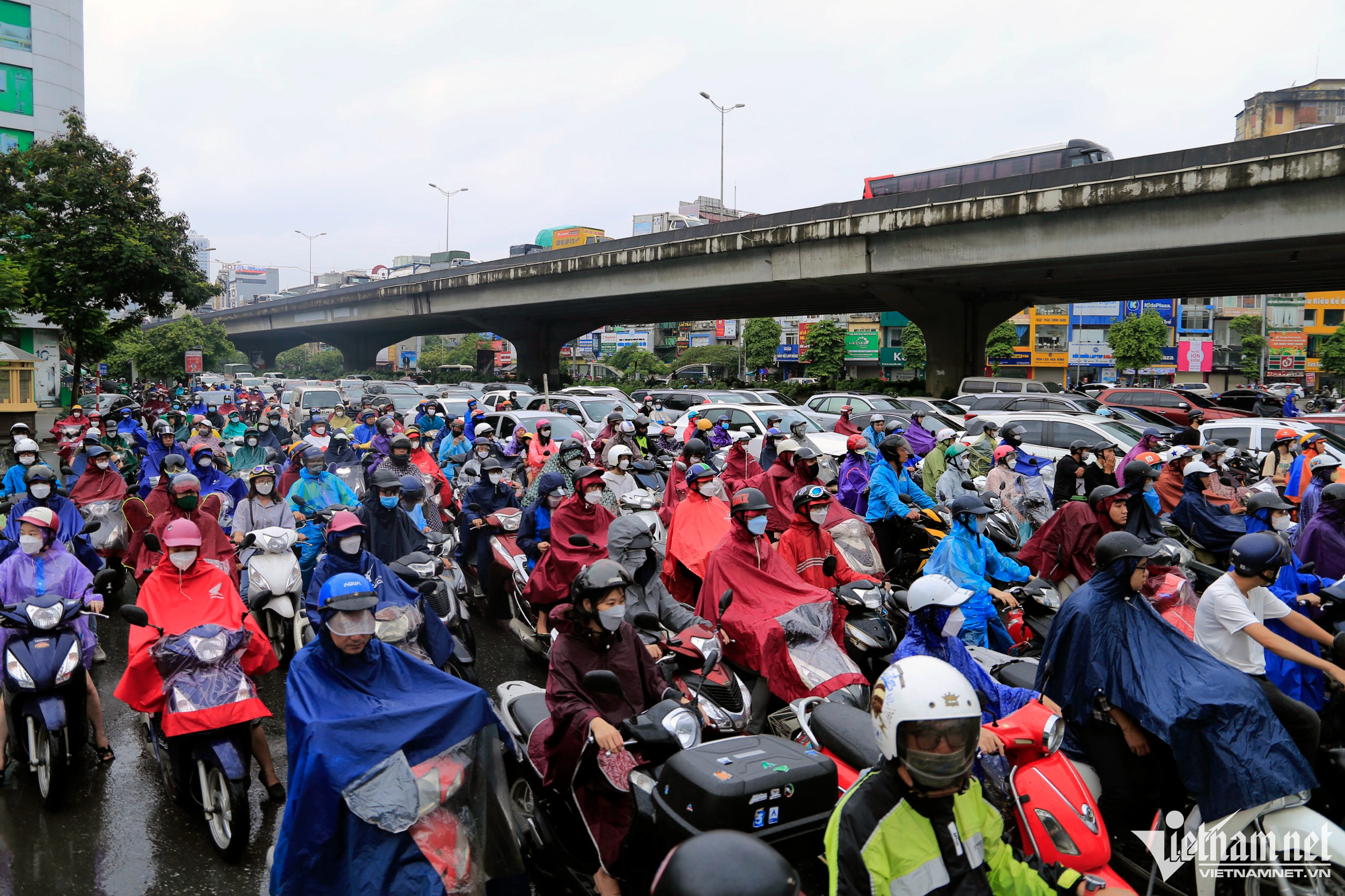 7h ngày 8/9, cảnh ùn tắc kéo dài tại phố Đào Tấn, hướng từ nút giao Bưởi tới Liễu Giai. Trong 40 phút phóng viên có mặt tại đây, chiếc xe bus vẫn không thể thoát ra khỏi khu vực này.Nút giao Nguyễn Xiển - Nguyễn Trãi, "đến hẹn lại lên" mỗi lần Hà Nội có mưa.Tình trạng rối loạn giao thông không chỉ xảy ra ở nút giao Nguyễn Trãi, cảnh tượng này còn xuất hiện tại nhiều tuyến đường lớn hướng về trung tâm thủ đô như Phạm Hùng, Lê Văn Lương, Trần Duy Hưng, Xuân Thủy... Cảnh sát có mặt từ sớm điều tiết, phân luồng nhưng nhiều thời gian đành bất lực nhìn dòng người ùn ùn chen lấn vội vã. Ôtô chiếm số lượng lớn trên đường, lấn át và chiếm hầu hết làn đường của xe máy.