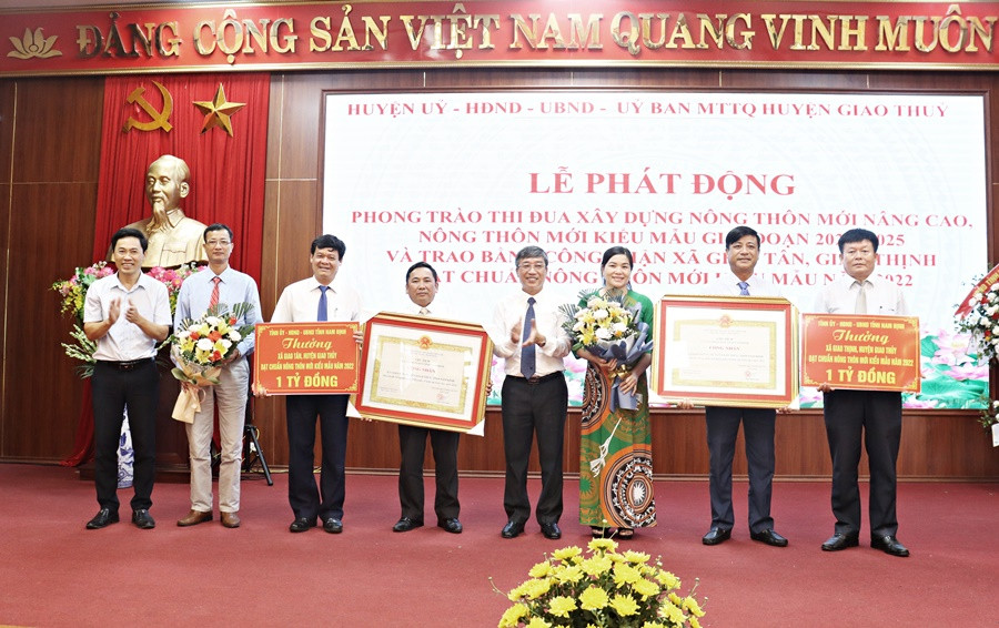Mới đây, huyện Giao Thủy, tỉnh Nam Định đã tổ chức Lễ phát động phong trào thi đua xây dựng nông thôn mới nâng cao, nông thôn mới kiểu mẫu giai đoạn 2023 - 2025 và trao bằng công nhận xã Giao Tân, Giao Thịnh đạt chuẩn nông thôn mới kiểu mẫu năm 2022.