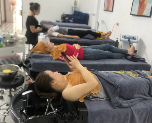 Làm việc ở spa được 1,5 năm, người phụ nữ này được tăng lương lên 4,5 triệu. Cùng với các khoản khác, thu nhập của chị ở mức 5,5-7 triệu đồng/tháng tùy lượng khách nhiều hay ít.