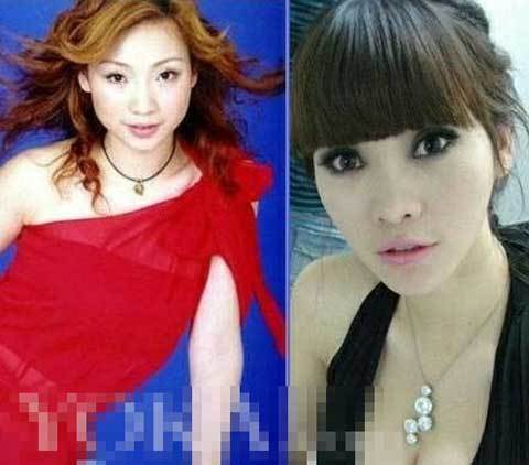 | Nữ ca sĩ Mano Erina thời còn "chân quê" và sau này khi đã được "tút tát". |