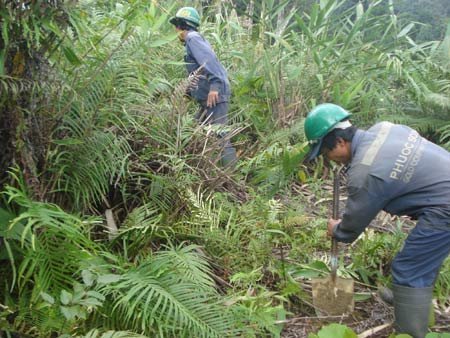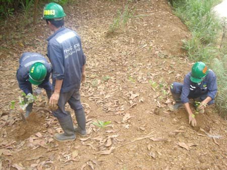 | Công nhân Công ty vàng Phước Sơn đang trồng rừng Sao Đen tại Phước Sơn |