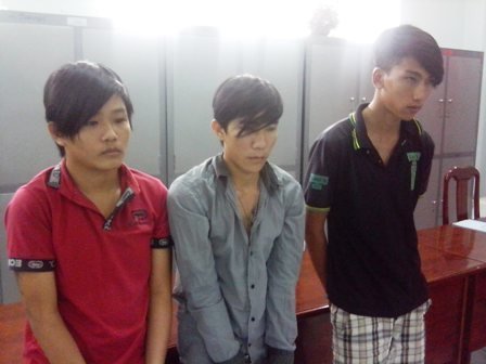 | Ba đối tượng bị bắt giữ (từ trái qua phải) gồm: Lê Văn Tâm, Trần Công Danh và Bùi Văn Đạt. |