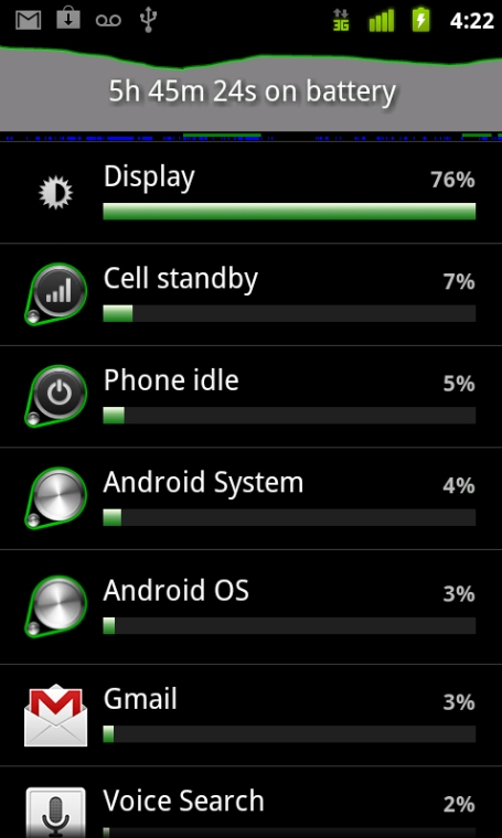 Gingerbread giới thiệu một màn hình quản lý năng lượng mới, cung cấp thông tin chi tiết về việc sử dụng pin. Nó còn hiển thị các ứng dụng chạy dưới nền và tính toán cả mức điện năng lẫn sử dụng CPU. Đây là hệ điều hành đầu tiên mang lại cho người dùng những công cụ mạnh mẽ nhưng vẫn dễ sử dụng để quản lý thời lượng pin của họ.