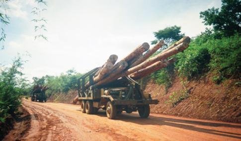 | Thi thoảng bắt gặp những chiếc xe chở gỗ từ rừng đi ra |
