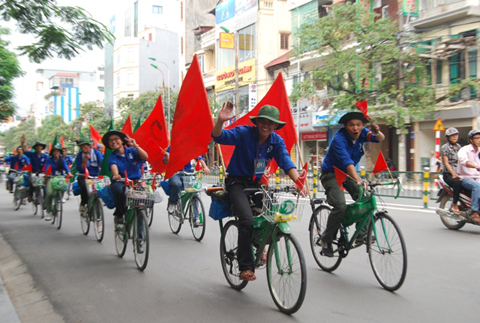 "Chúng mình chọn ngày nghỉ giỗ Tổ để tổ chức chuyến đi vì ngày này các TNV mới được nghỉ, tập trung đông đủ để thực hiện chuyến đi xa. Dịp nghỉ lễ 30-4, 1-5 sắp tới đoàn mình sẽ đi thực tế 4 ngày bằng xe đạp đến huyện vùng cao Tân Sơn- Phú Thọ", Giang nói.