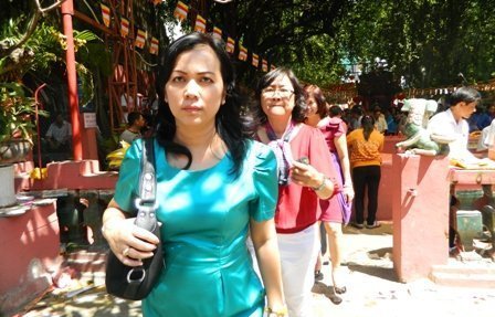 Tranh thủ giờ nghỉ trưa, họ gọi điện bạn bè, đồng nghiệp cùng đến chùa viếng, bái.