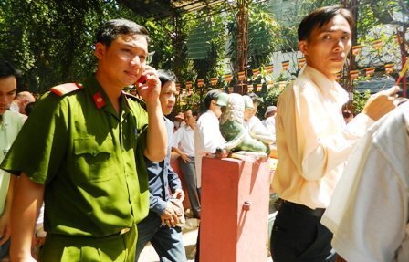 Có cả một chiến sĩ công an viếng chùa đầu năm.