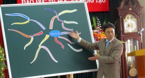 | Thầy hiệu trưởng Nguyễn Mạnh Hưng đang giới thiệu về BĐTD ghép hình |