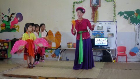 | Cô trò cùng hát dân ca tại trường mầm non Bình Minh, Quỳnh Côi, Quỳnh Phụ, Thái Bình |