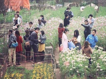 Chỉ còn gần 2 tuần nữa là đến Tết. Thời điểm này, hầu như ngày nào vườn đào Nhật Tân cũng kín đặc các bạn trẻ tới đây chụp ảnh.