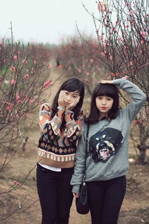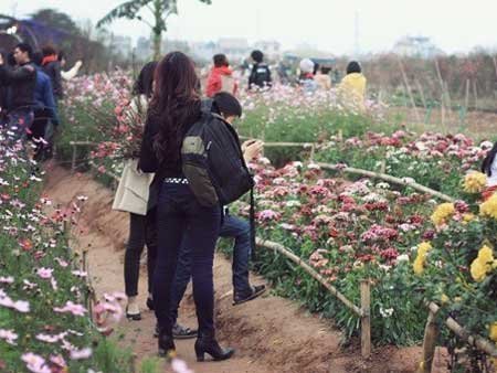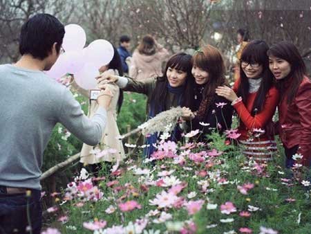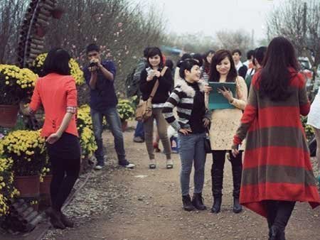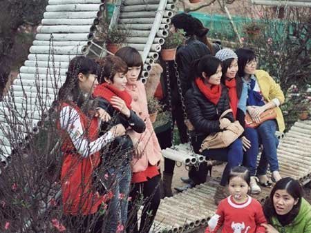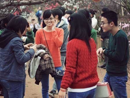Thời gian này ở vườn đào Nhật Tân, hoa đào đã bắt đầu nở. Vườn hoa được trang trí khá đẹp mắt, cùng với vẻ háo hức, quần áo xúng xính của các bạn trẻ càng khiến cho không khí Tết rõ ràng hơn...
