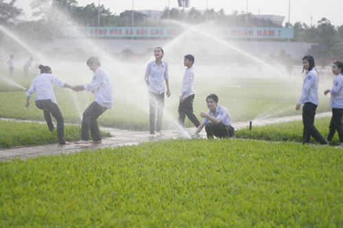 | Các bạn học sinh tranh thủ lúc tan học ra vui đùa dưới vòi nước |