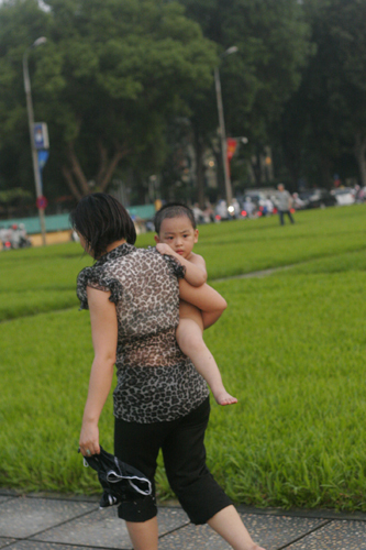 | Ánh mắt tiếc nuối khi bị mẹ bắt đi về |