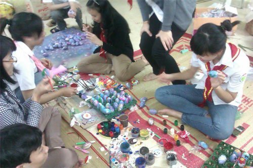 Miệt mài vẽ đến 11h đêm. Mỗi dịp lễ Phục sinh, các em vẽ hơn 500 quả trứng. |
