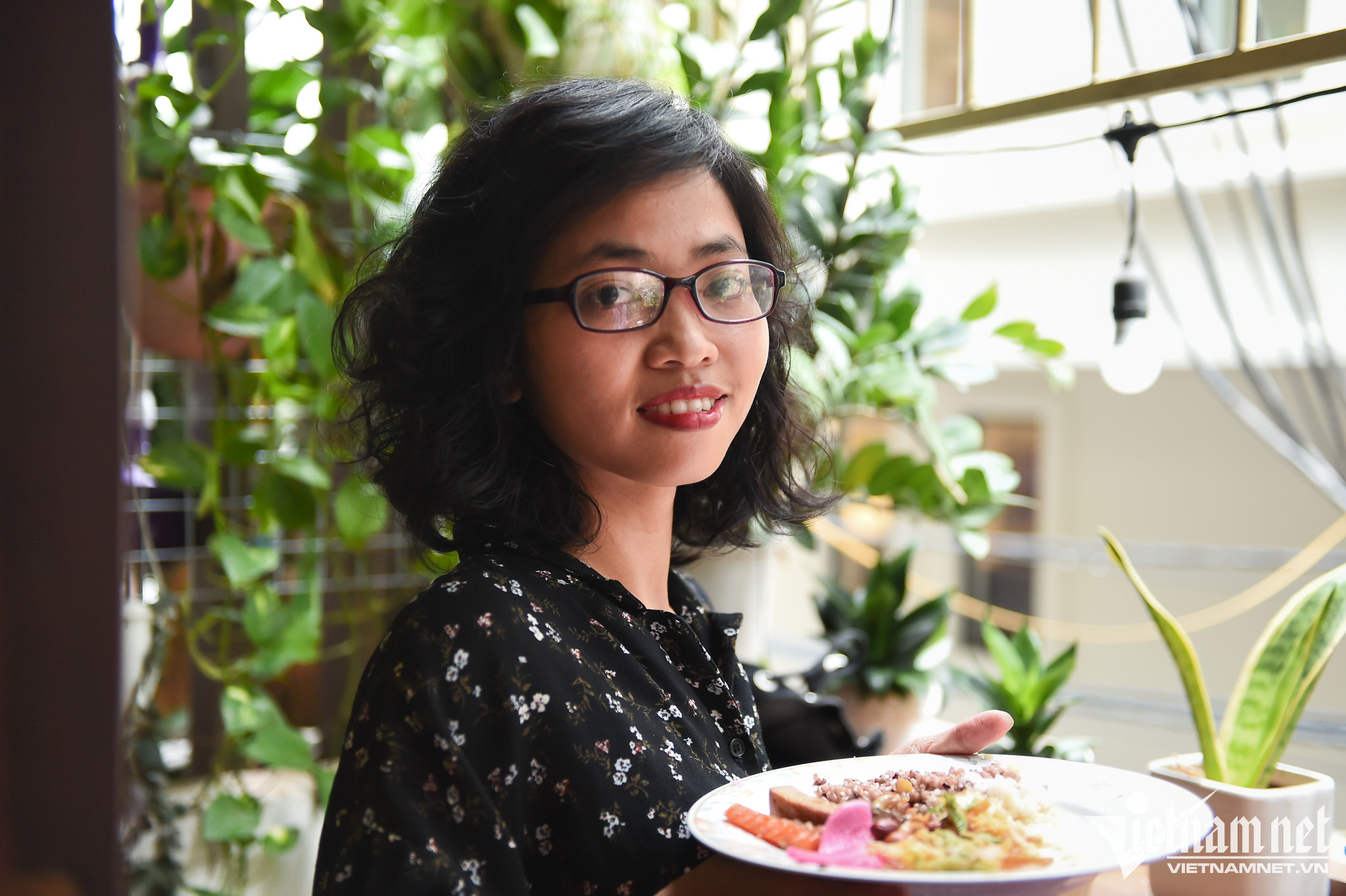 Trang Nhung (28 tuổi, giáo viên tiểu học) chia sẻ cô thường đọc sách về thiền, chữa lành... đặc biệt yêu thích các tác phẩm của thiền sư Thích Nhất Hạnh. Đó cũng là lý do cô tập thói quen ăn chay, đến nay đã được 6 năm. "Mình ăn chay vì cảm thấy phù hợp với cơ thể, không cố ép bản thân. Hôm nay là rằm tháng 8 nên tranh thủ đi ăn. Thường lịch ăn chay của mình không cố định mà đan xen để cân bằng dinh dưỡng của bản thân", Nhung nói.