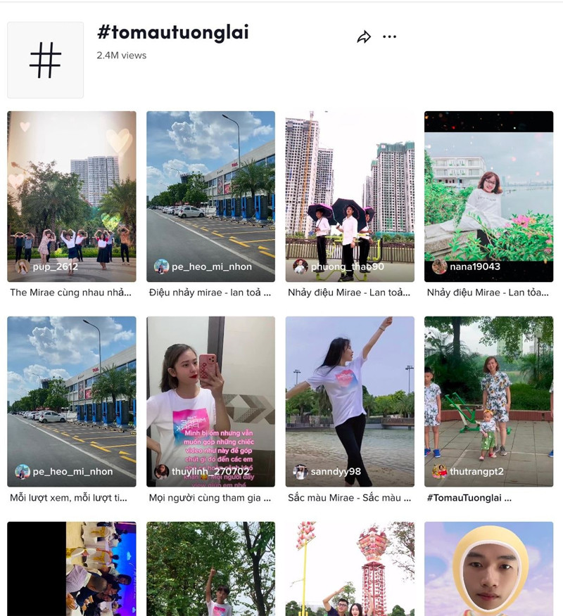 Theo thông tin từ ban tổ chức, chương trình “Nhảy điệu Mirae - Lan tỏa nhiệm màu” đang tiếp tục nhận được sự hưởng ứng nhiệt tình từ cộng đồng. Hiện chương trình đã thu về hơn 2,4 triệu view cho tất cả các clip tham gia và con số này đang tiếp tục được nhân lên theo từng ngày.