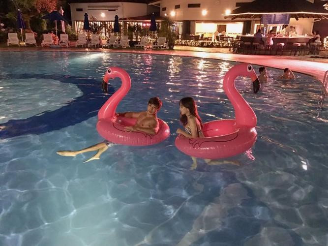 Bữa tiệc bể bơi được trang trí rất bắt mắt, có đủ loại phao, bóng bay, đồ uống nhiều màu cho giới trẻ tha hồ sống ảo.