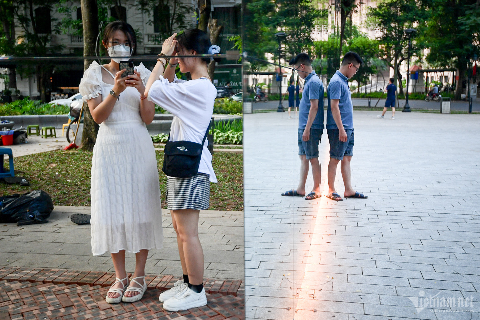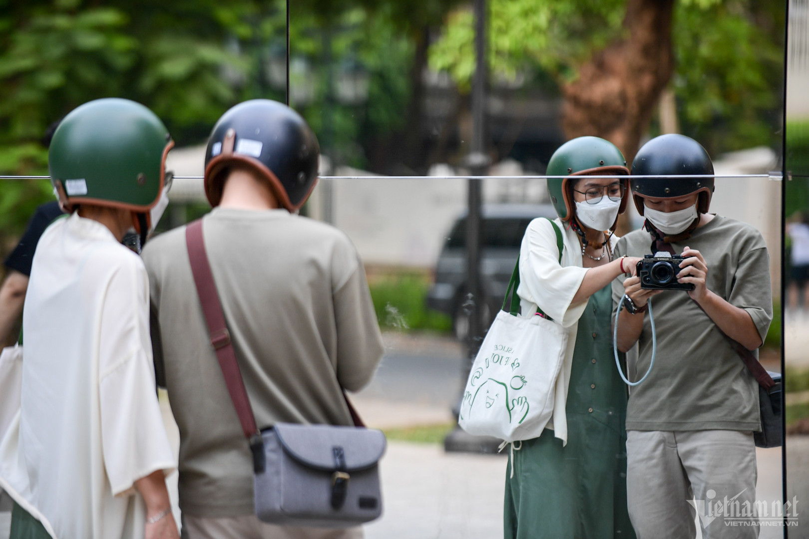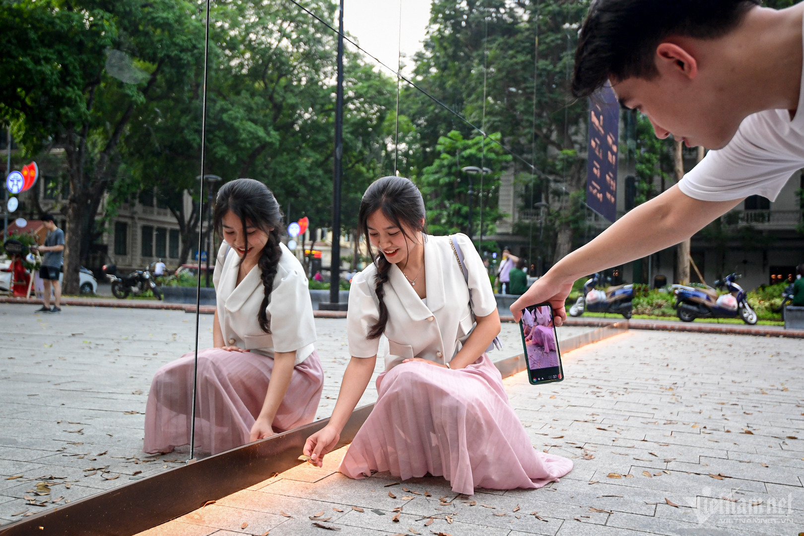 "Khi đi ngang qua đây chúng mình thấy rất ấn tượng đã tranh thủ lưu một vài khoảnh khắc đẹp cùng nhau", bạn Hiếu (Hoàng Mai, Hà Nội) nói.